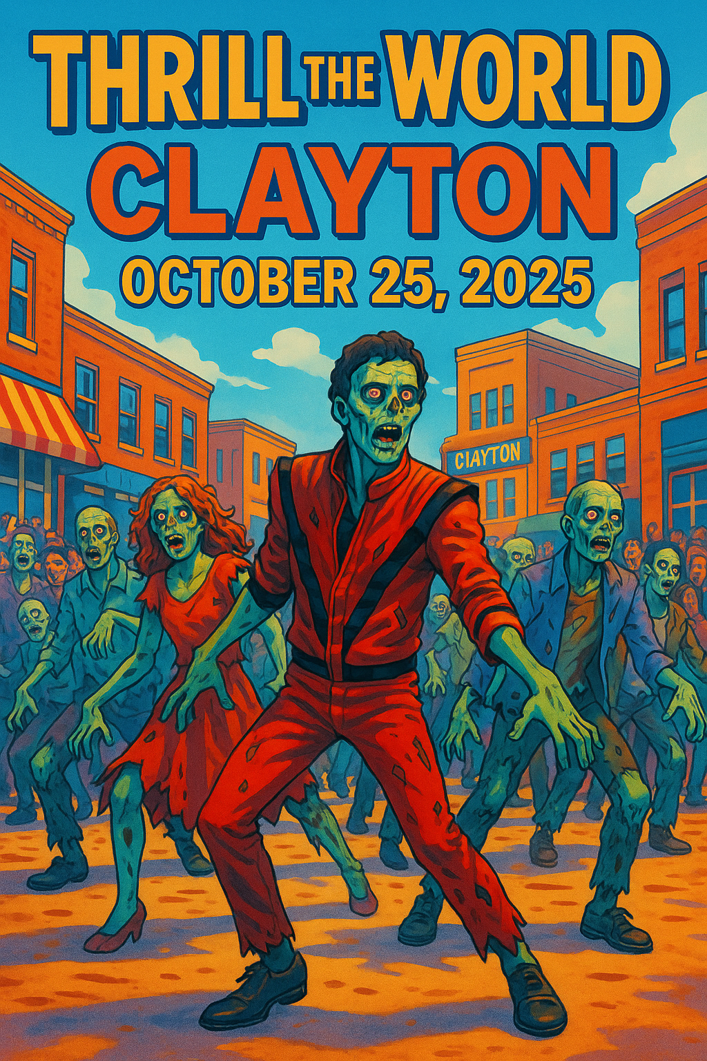 Clayton, NC — August 4, 2025 – Clayton Arts Alliance has been invited to participate in Thrill the World — the 19th annual worldwide simultaneous dance to “Thriller” — on Saturday, October 25, 2025 with performance and filming at 6 pm in Downtwon Clayton.