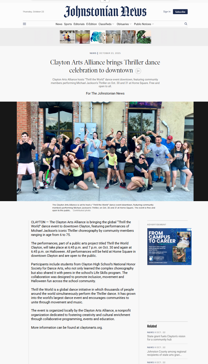 Original Thriller choreography by Michael Peters. Clayton Arts Alliance will perform a modified version for Thrill the World.